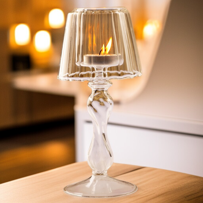حامل شموع زجاجي شفاف على الطراز الأوروبي لمصباح طاولة